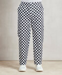 Unisex pull on chef’s trouser. Available in large “Black & White” Check or Black. Elasticated waist for easy pull on trouser. Unisex sizing. Stocked in 30.5” inside leg. Side swing pockets. Draw cord.