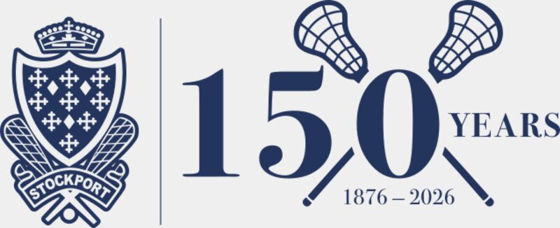 stockport 150 logo blue on white