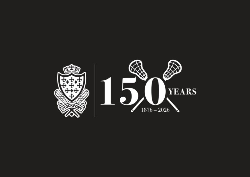stockport 150 logo white on black